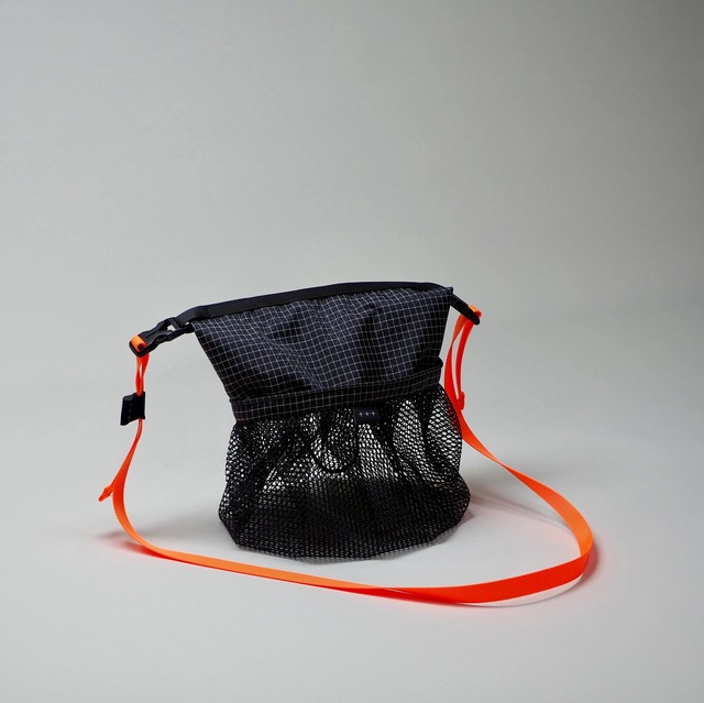 The Future (ザフューチャー) 3年間の集大成とも言うべきバッグ。 これが僕らの描いた未来で僕らが未来。 本体はSpectra®︎生地とラッセルメッシュのコンビで製作しました。上部は僕らの顔とも言うべきオリジナルスタイルのコードパイピングでソフトボーン仕様の為柔らかく型崩れしないタフ&軽量に仕上げています。下部はとても軽く上質で丈夫な210デニールのセミダルナイロンを使用したラッセルメッシュ仕様で一般的なペラペラメッシュとは全くの別物ですから、床に置いたバッグが型崩れして倒れる心配はありません。 最大のポイントは底面と側面がシームレス構造な事です。縫い目のないゴム風船みたく内容物によって自在にマチが変化しプリーツ構造でより柔軟性に優れた袋に組み上げました。スマホやタオルはもちろん500mlペットボトルも収めることができます。 内部にはコア入り2.4mmコードを一部チューブ仕様にしている為、コード自体がへたらずフック等をかけやすくしています。 ストラップを外せばメッシュ仕様の型崩れしにくいスタッフサックとしても使用可能な2way仕様です。サイズ感も含めまだ僕らの知り得ない無限の可能性を秘めていると思います。 素材:本体/Spectra®︎、210デニールのセミダルナイロンラッセルメッシュ :ストラップ/15mm高密度ソフトナイロンテープ、ネオンオレンジ/15mm平織り(細コール)ポリエステルテープ、YKK両アジャスターバックル(LB16LVD) サイズ:本体/トップ開口 φ140mm、高さ 280mm :テープ/最長使用範囲 1,100mm 横幅/15cm 重量:61g(±2g)※ストラップ含む