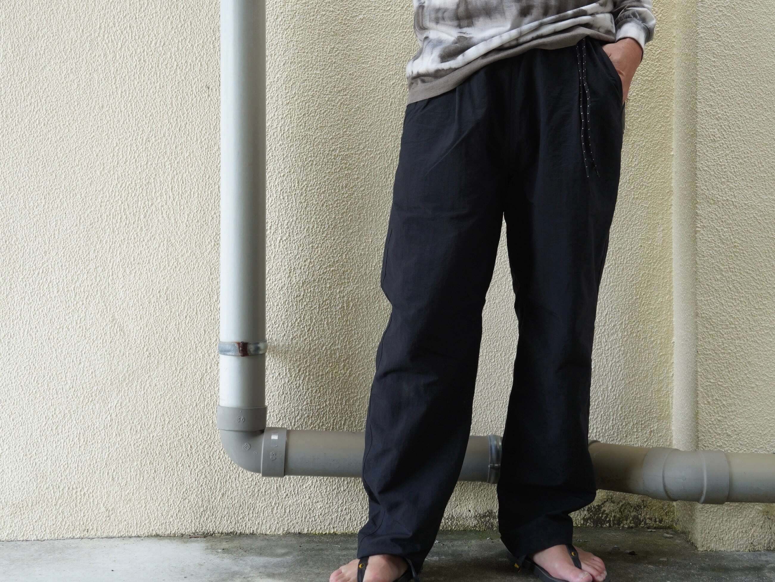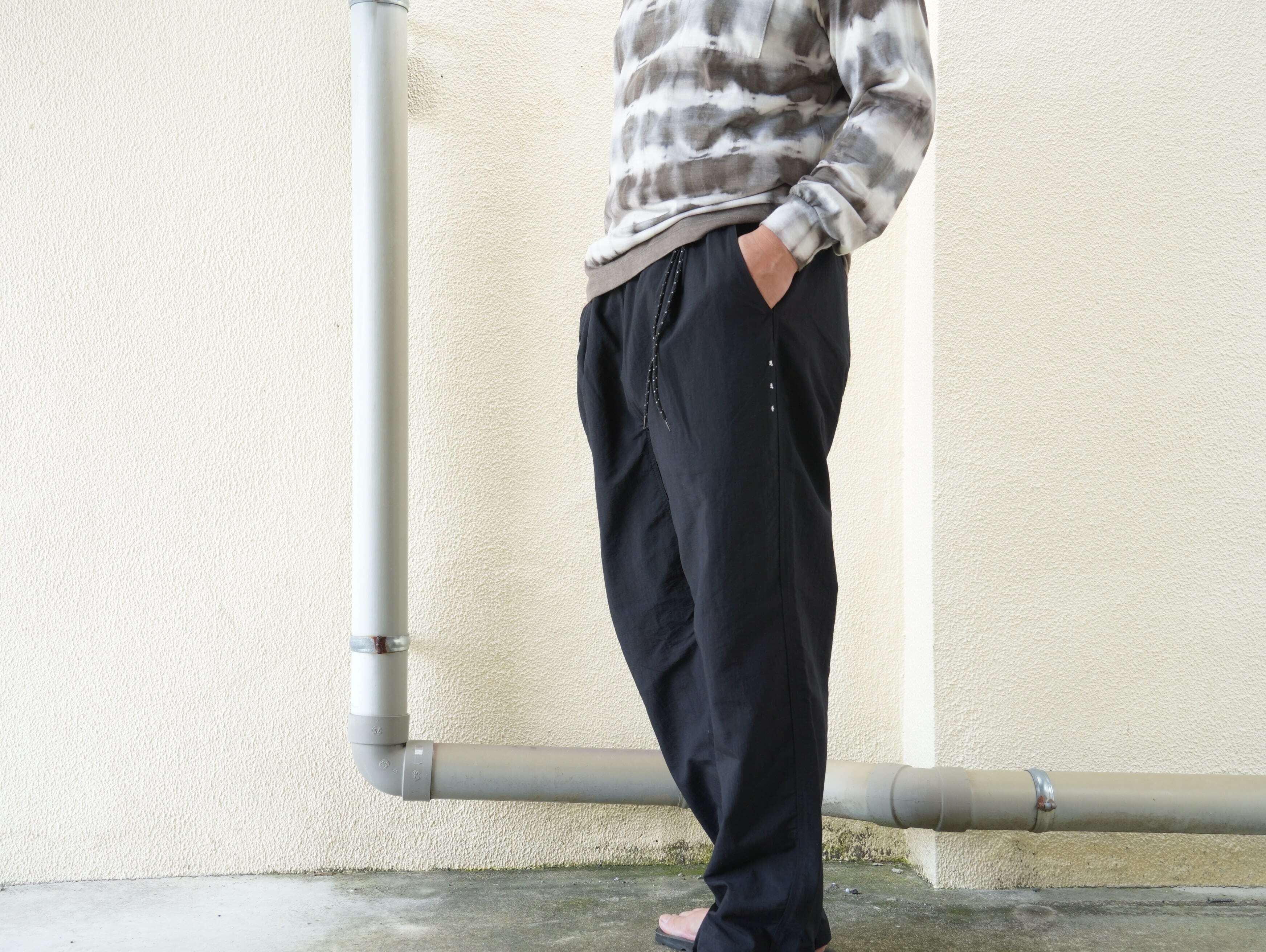 定番NYLONHARVEST TRAINER の腰まわりデザインはそのままに、裾のリブとファスナーを無くし、より普段着として着やすいアレンジを加えたパンツです。