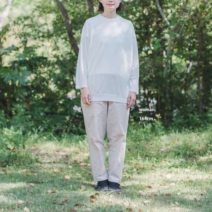 デザインはリラックスシルエットながら、袖口と裾に同素材のフライス地を使用した緩めのたリブを施すことでShort Sleeve・Three-Quarter Sleeveともに体型を問わない上品なニットのような雰囲気に仕上がりました。とはいえ、肩の可動部分にはラグランスリーブとパターンで作った脇の隠しマチを組み合わせることで、しっかりと動けるアクティブさも兼ね備えています。