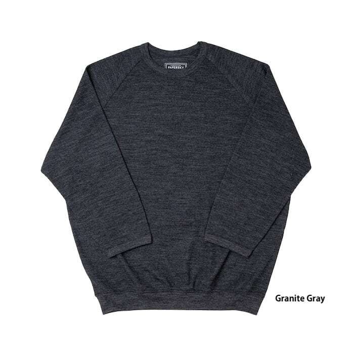 素材は軸糸にポリエステルのフィラメント糸、カバー糸にニュージーランドメリノウールとCOOLMAX®の混紡糸を使用したワッフルジャージー。メリノウールの持つ優れた調温・調湿機能と天然の強力な消臭作用にCOOLMAX®の吸水速乾性も掛け合わせたハイブリッド素材のため、旅の最中の洗濯の煩わしさから解放され、たとえ洗濯してもすぐに乾いてくれることで身軽に旅に出かけられます。また表面に凹凸のあるワッフル組織は生地が直接肌にあたる面積が小さいため張り付く不快感が少なく、暑い時期は1枚で着用すれば風が抜け、寒い時期は生地と体の間に空気の層をつくり、暖かく過ごすことができます。