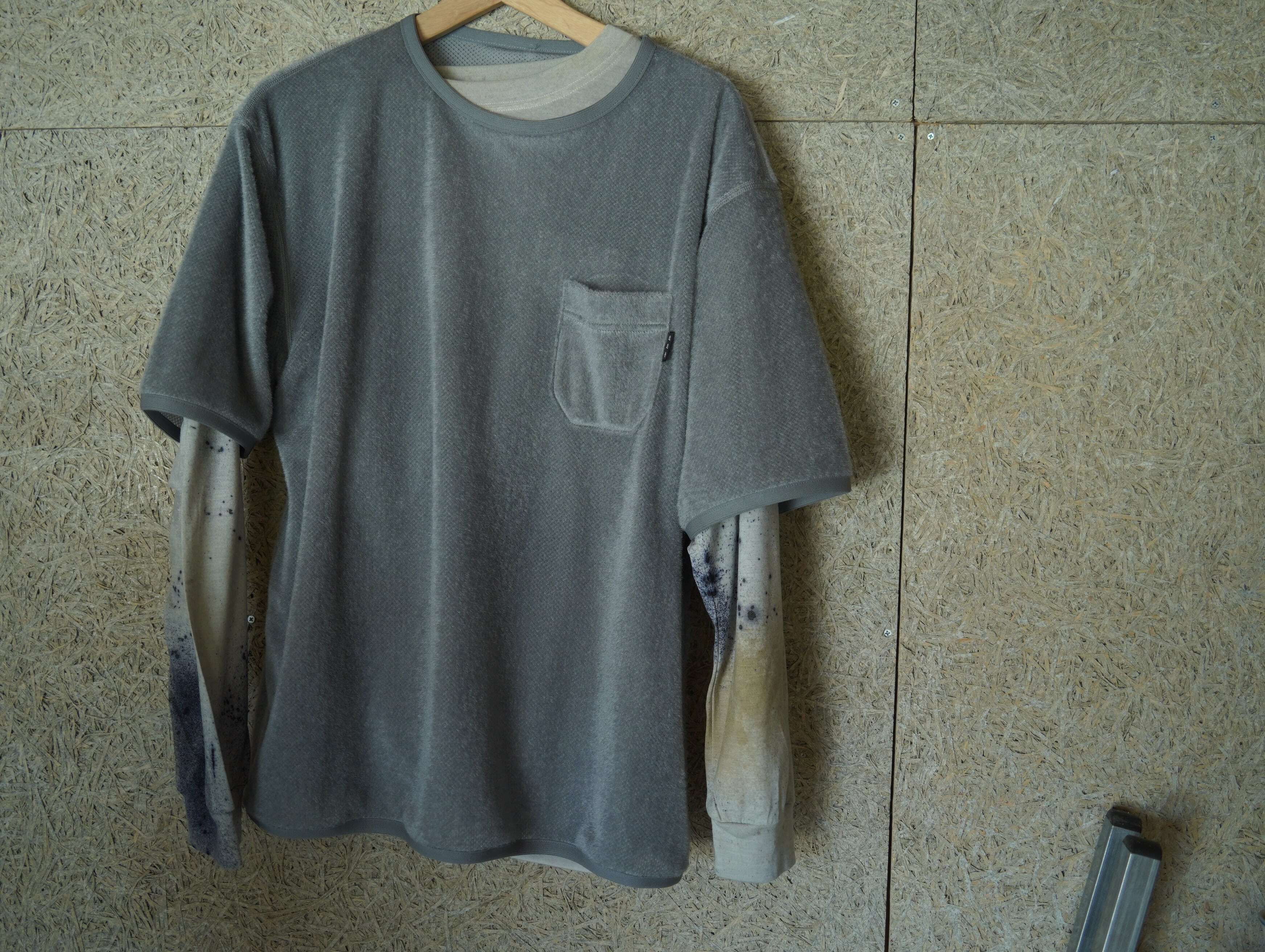 タウンユースで着用するときはモコモコが可愛いので、起毛面を表にし、胸のポケットアクセントがある暖かなtシャツとして着用。ハイクの時は裏返して起毛面を裏にして、汗の吸い上げの良さと速乾性をマックスに機能させるという1枚2役のTシャツです。