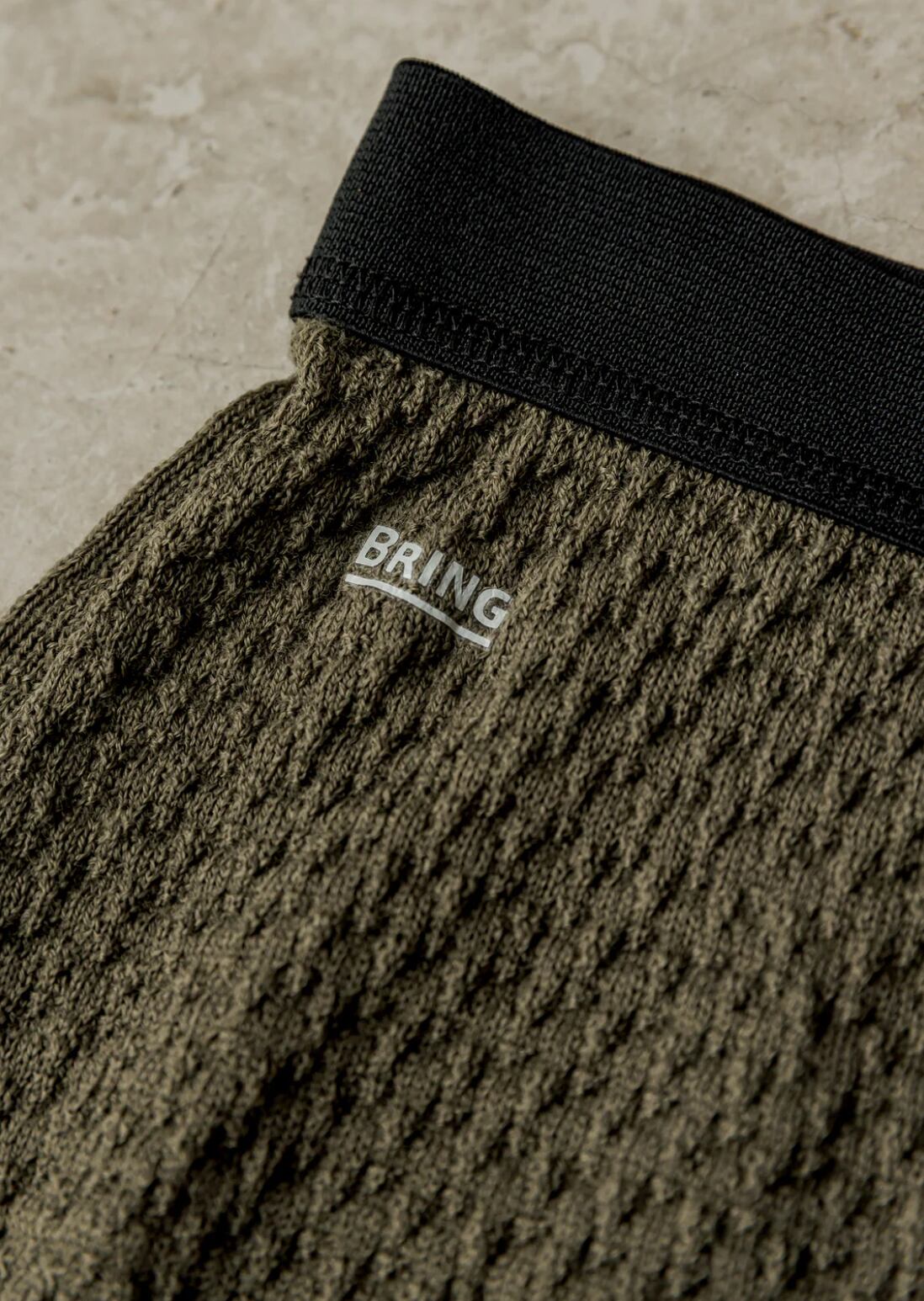 BRING Material™の再生ポリエステルが持つ速乾性でウール100%と比較して早く乾くので、行動中は常に肌をドライに保ちながら、洗濯時も早く乾きます。