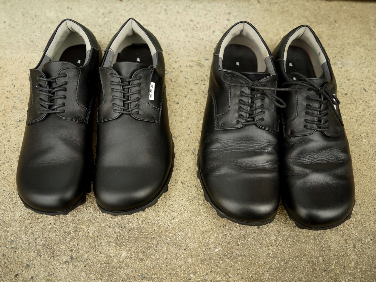 そして近年、ベアフットシューズに出会ってからは、靴への考え方がガラリと変わり、ほぼそちら方面の靴だけの生活となっていたのだけど、街で履いていると、カジュアルすぎる感じやナチュラルすぎる感じが少し気になり始めて、昔の上品で美しいシルエットとベアフットシューズの両方の良さを持った靴を作りたくなり、今回の商品を作りました。