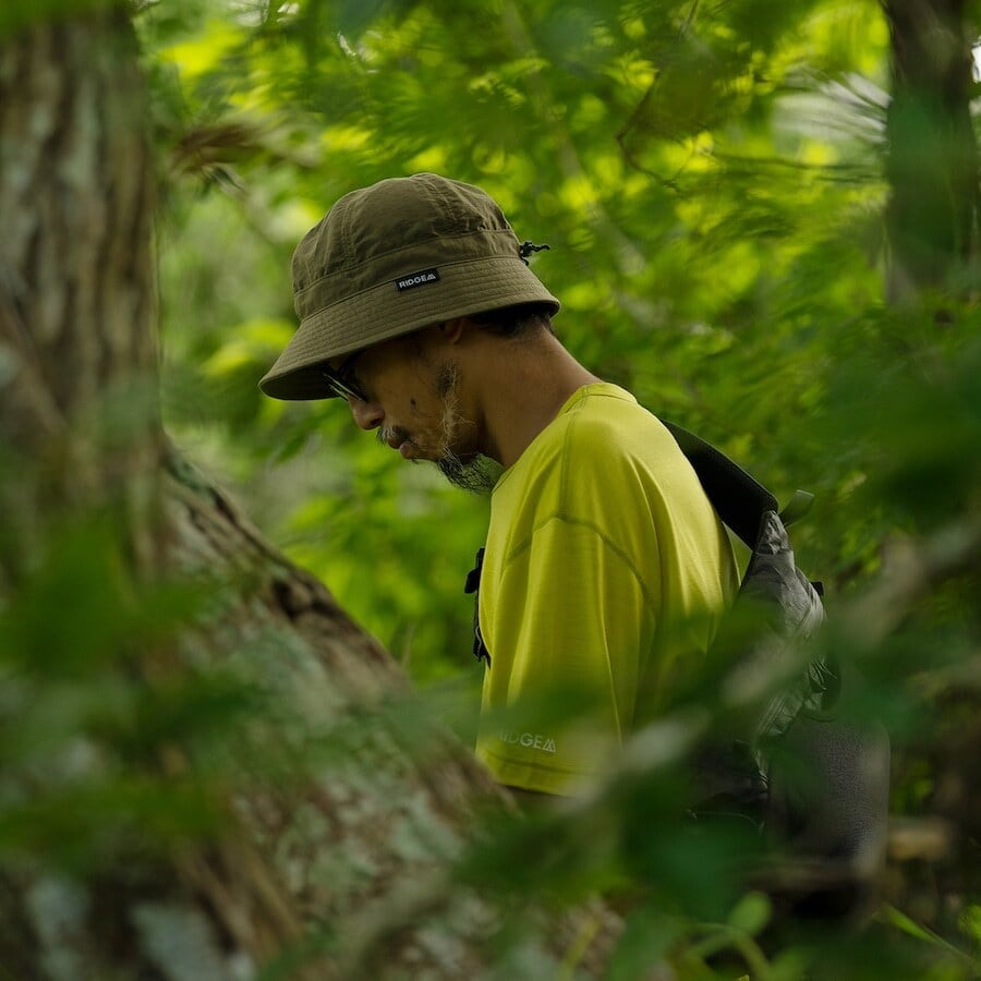 「もっとシンプルで、もっと自然に耳を守れる帽子が欲しい」というささやかな願いが、「Enough Hat」の誕生のきっかけとなりました。ハイカーとしての経験を振り返りながら設計を進めたこの帽子は、RIDGE MOUNTAIN GEARの定番「Basic Cap」を基に、耳をしっかりと覆う「ちょうどいい」長さのブリム(つば)を追加しました。日差しをしっかりと防ぎつつ、視界を妨げない絶妙なバランスを実現しています。