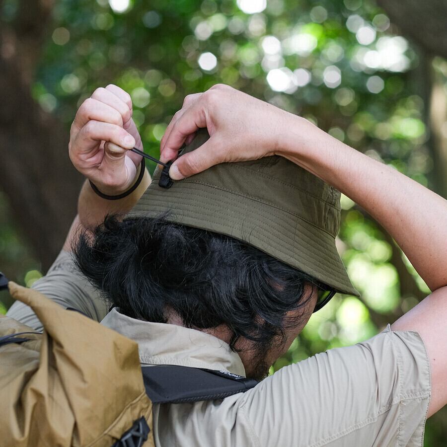 デザインにもこだわり、必要以上に大きくならないミニマルな佇まいを意識しました。高地の強い日差しだけでなく、低地でのハイキングや街中での日除けとしても快適に使用できる万能な一枚に仕上げました。通気性と速乾性に優れた素材を採用しているため、汗ばむ夏の山歩きでも蒸れずに快適です。耳の日焼けを気にせず、景色や風を存分に楽しむことができるようになりました。