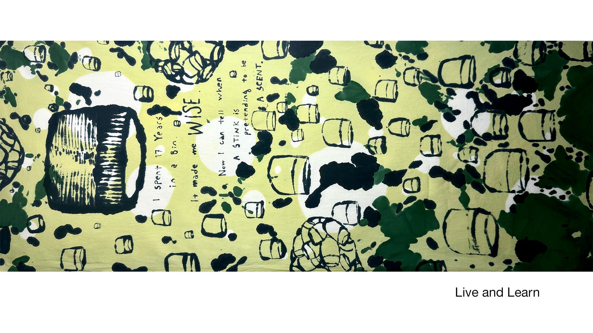 背景の色は浜松の『二橋染工場』の注染染め、繊細なデザインは『藍熊染料』の染料を使って筆で描きあげた「オリジナル手描きイラスト手拭い」です。
