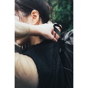 スナップを外して、前後ろ逆にも着用可能。バックパックを背負ったまま着脱できます。