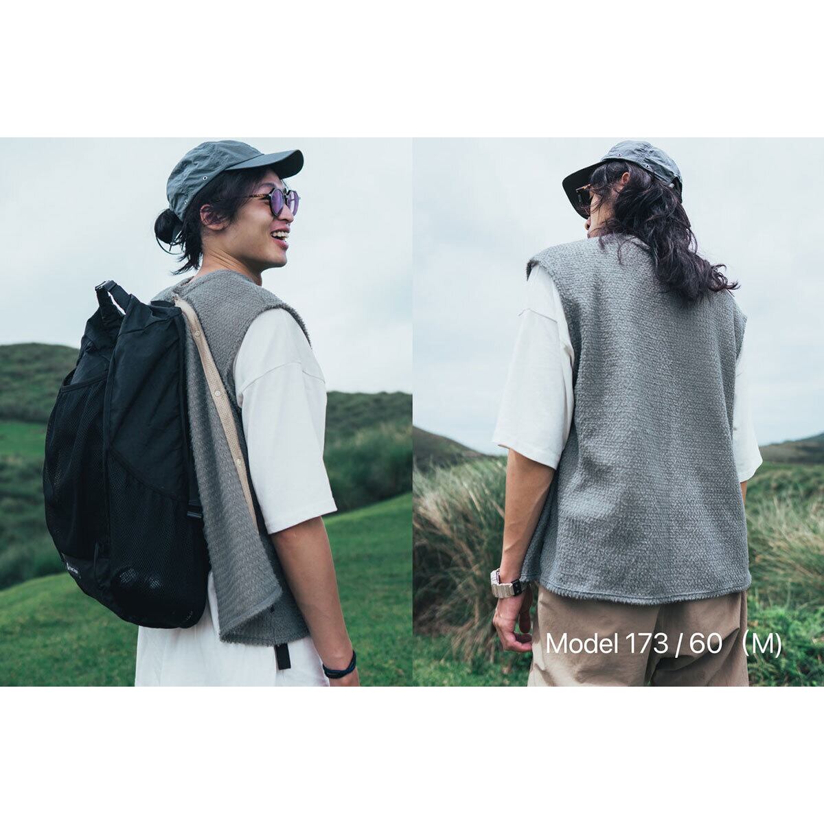 60ファブリックは、短い起毛、低い密度、大きなメッシュ構造により、優れた活動中の通気性、速乾性、軽量性、収納性を持っています。